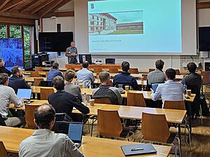 The event began with an inspiring introduction by Professor Frédéric Pichelin, who presented the HESB's Architecture, Construction and Civil Engineering department and its Research & Development division. Heiko Thömen, responsible for the Scrimber project at the HESB, presented the results of his department's research in the field of composite materials. Stefan Zöllig, President of IG-Scrimber, then explained the manufacturing process, the positive properties and the fascinating aspects of the innovative material that is scrimmer.